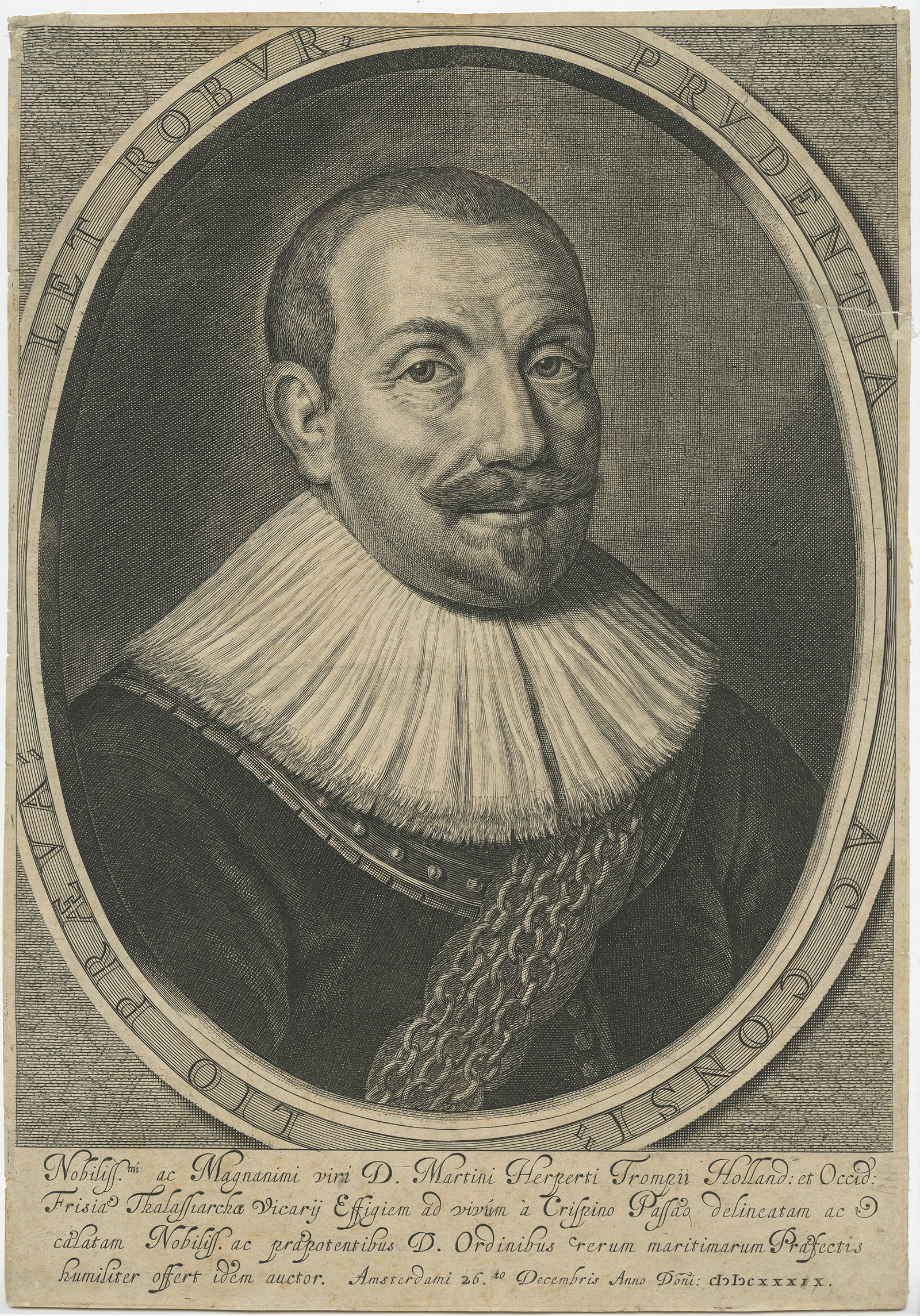 Description: Antique master print titled 'D. Martini Herpert Trompii'. Antique portrait of the admiral Maarten Harpersz. Tromp.